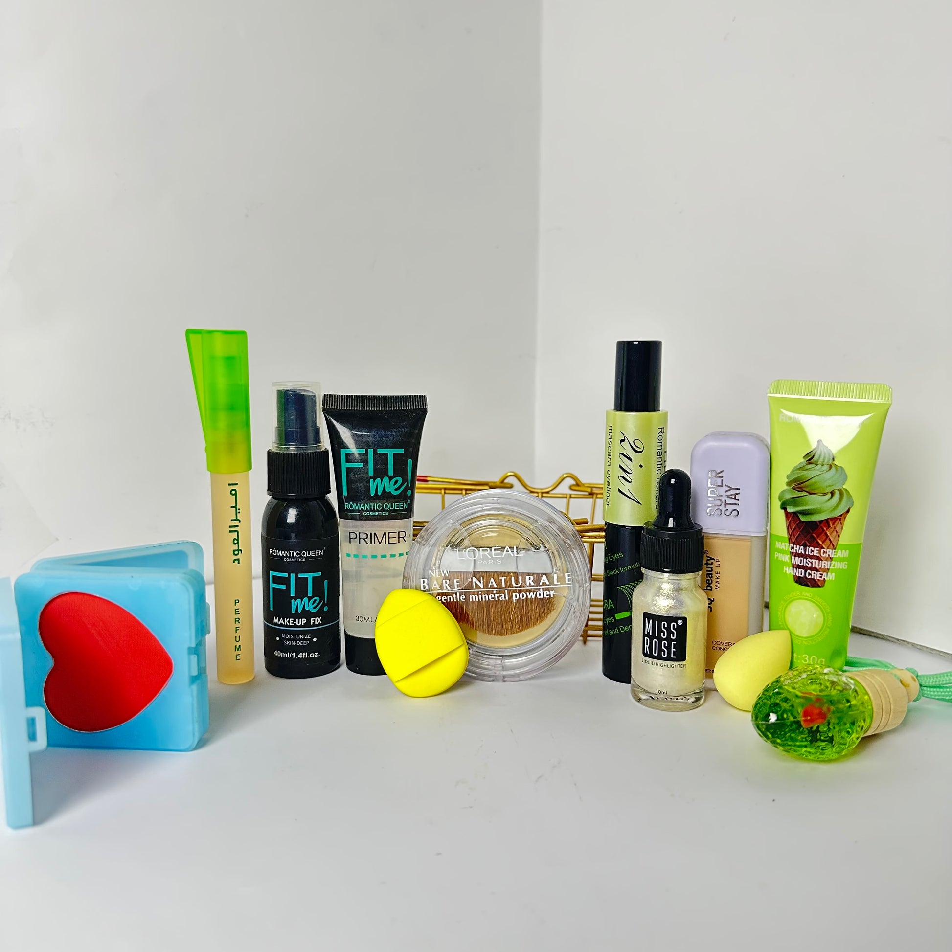 Guggi Mini Makeup Kit: A portable and essential travel-friendly makeup kit with a free pouch and gift inside.