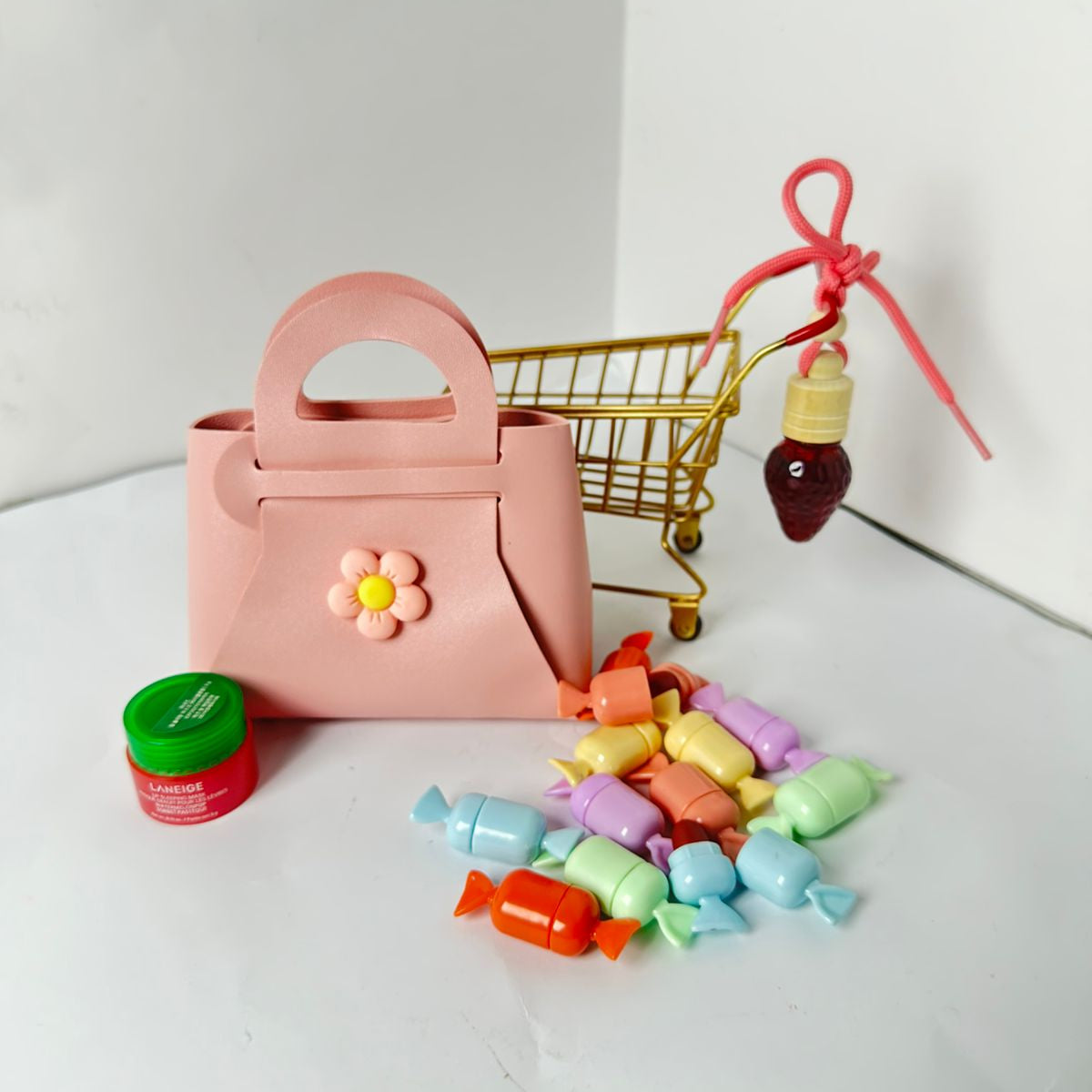 Optional Storage: Upgrade your set with the adorable Mini Pink Handbag.